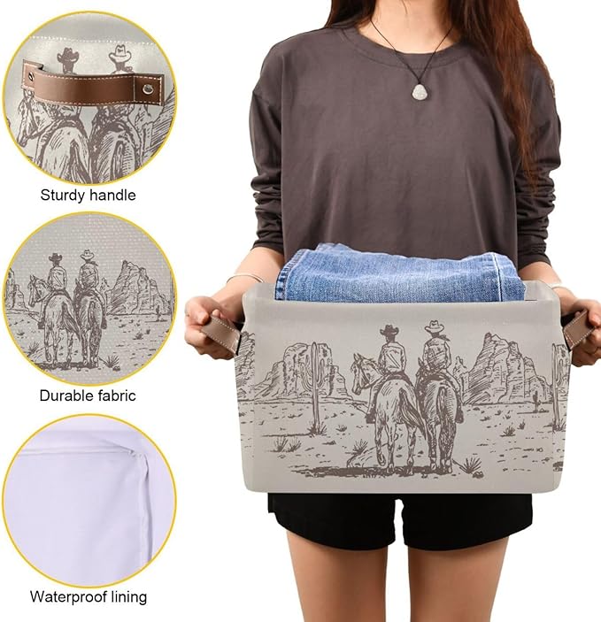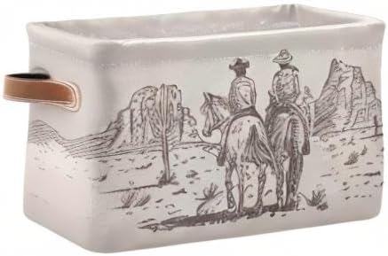 Western Desert Cowboy Storage Basket Cube Storage Bins Organizer Bag Collapsible Closet Shelf Baskets with handle for Baby Cloth Pet Toy Book 14.2×10.2×8.3 IN