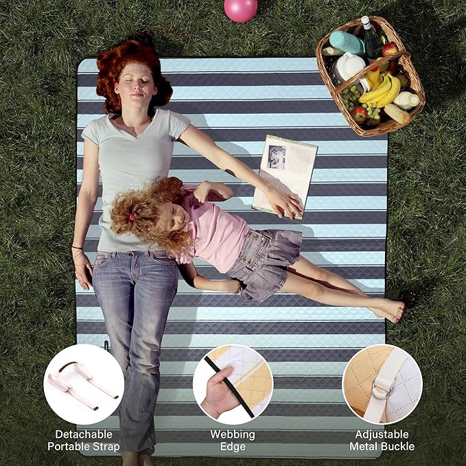 • 【Waterproof & Machine Washable】Outdoor picnic blanket is super easy to clean due to its durable and waterproof backing, easily shake & wipe off dirt, mud, wet grass, and beach sand. And you could put it into washing machine to save your time and free both hands.