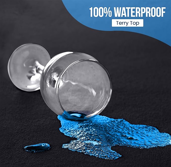 • Waterproof Terry Top - The mattress protector protects your mattress from unwelcome spills and keeps your mattress clean and safe. High-quality TPU backing secures your mattress from the top and resists any leakage into the mattress.