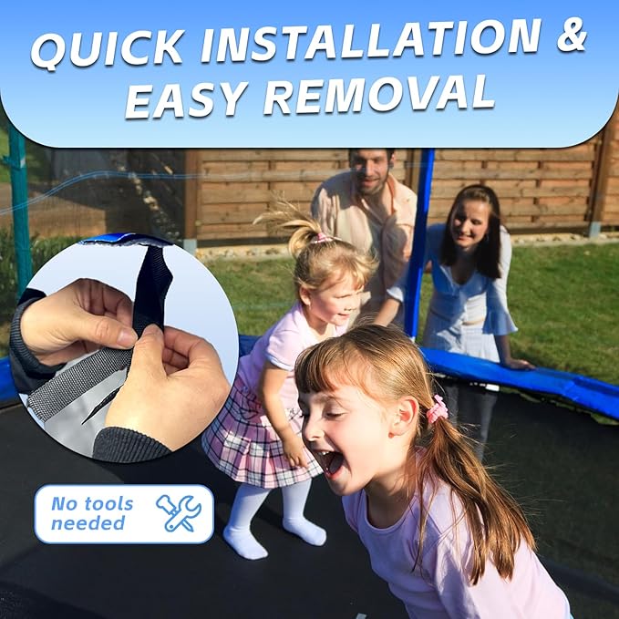 • Quick Installation and Removal: With a simple and easy design, the outdoor trampoline safety pad can be installed or removed in just about 5 minutes, making it easy for quick trampoline use and convenient storage