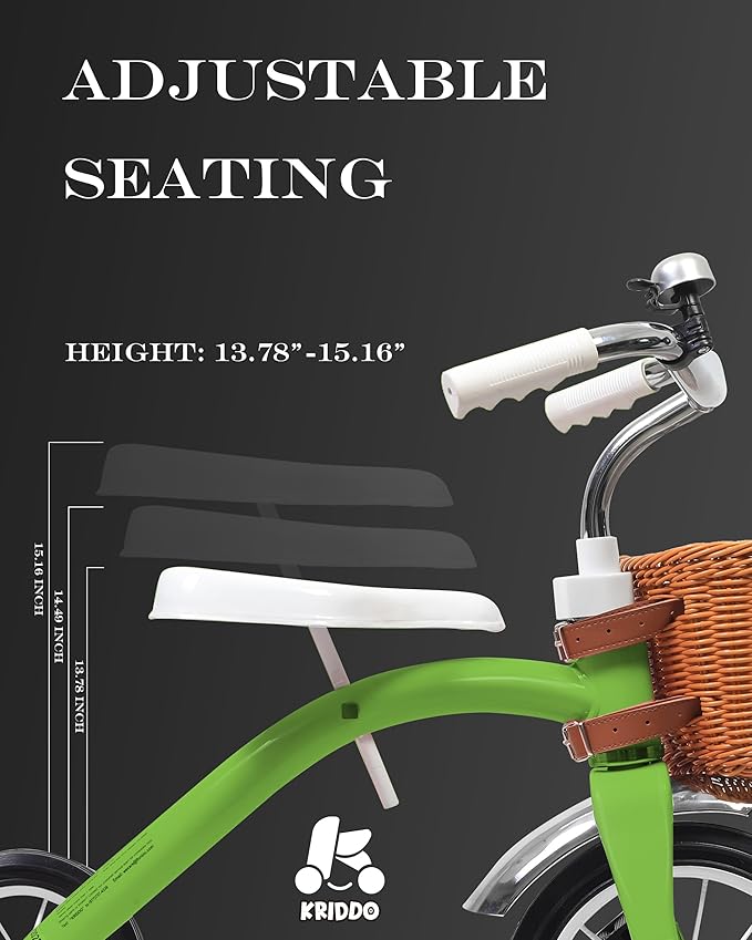 • ADJUSTABLE FOR COMFORT: The adjustable seat ensures your child can easily reach the pedals while seated comfortably, allowing them to take control of their trike with ease.