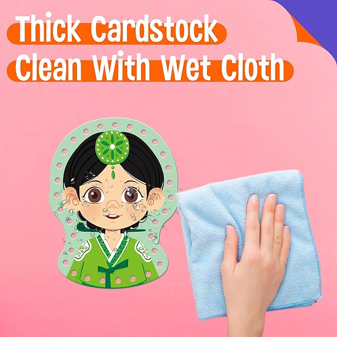 • Cute Patterns & Smart Designs: The pattern covers cure children from different countries, like China, Korea, America, etc. The illustrations on cards are big, vivid and vibrant. The holes are clearly cut and easy for preschoolers to work with. The strings are easy for children to use and fit into the holes easily.