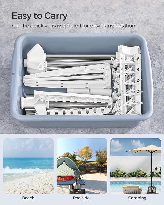 • [Easy to Set Up and Carry Around] The rack comes in 9 parts, making it easy to set it up or take it down in a minute, so you can bring it with you for drying clothes when camping