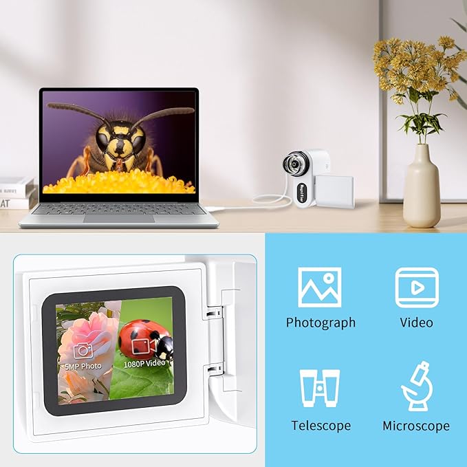 • 【3 in1 Multi-functional Design 】WINWEND's device can 1) microscope search, 2) one-click photo and video recording, 3) work as a telescope, choose different modes enhance your child's curiosity and desire for knowledge about animals and plants.