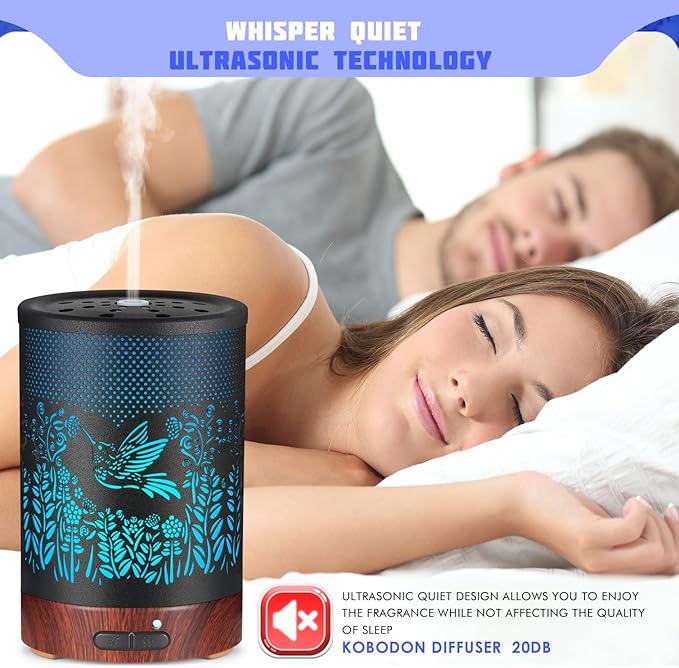 Metal Essential Oils Diffuser 150ML Aromatherapy Diffuser Cool Mist Humidifier with 7 Colors Lights Waterless Auto Off Air Diffusers as Gifts for Moms Women Girls (D-Hummingbird)