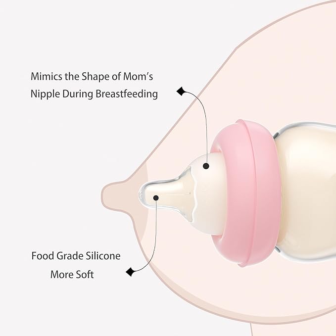 • YOHKOH Natural Baby Bottles are made of high quality borosilicate glass, pure and clear without impurities. Paired with a liquid silicone nipple, it can help empty the bottle of air, and the baby can comfortably complete the feeding.