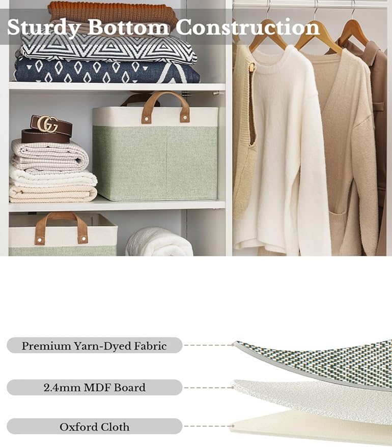 • Premium Quality: Made from high-quality fabric and reinforced with a heavy-duty MDF bottom board and a sturdy metal frame. The solid construction enables the storage bins to stand upright without support, even when empty.