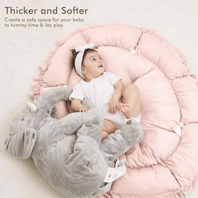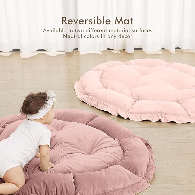 • THICKER & SOFTER: The reversible play mat crafted from premium plush material, offers a fantastic amount of cushion. Its neutral color scheme blends in with your home’s aesthetic so you can keep it out even after playtime is over.