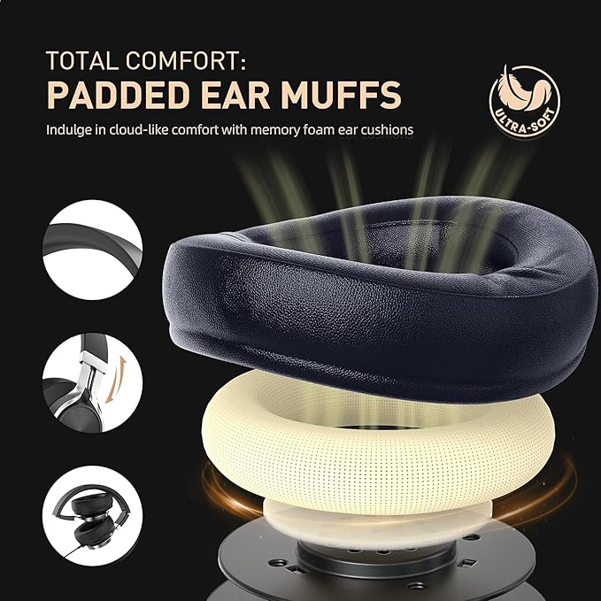 • Unparalleled Comfort for All-Day Use: Featuring 1/3 larger advanced protein leather soft cushions, the headphones offer superior comfort. The adjustable headband ensures a perfect fit for teens and adults, making them ideal for extended use