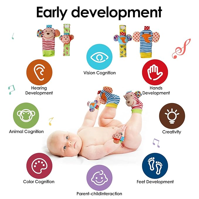 • 【5 In 1 All-Round Development】4 Removable sensory toys and 1 flower mirror, fully meet the baby's growth needs. 4 Toys: Baby teapot rattle, water cup rattles for newborn baby touching-growing,and TV rattle,clock rattle for improve baby responsiveness.Piano keyboards touching for graphics ,listening .All for colors cognitive. 1 flower mirror,as an important way for self-discovery.