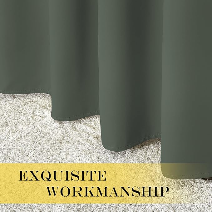 • Amazing Material: Super heavy and soft Blackout Curtain Panels are very upmarket. Besides, 85%-99% light blocking, thermal insulated, soundproof, and energy-efficient. Thread trimmed and wrinkle-free, both sides are the same color.