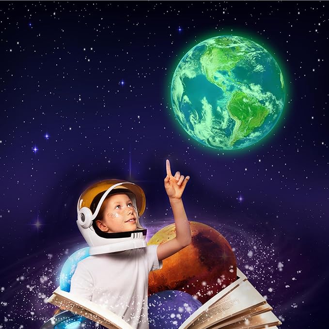 • Robmoda Glow in The Dark Planet - One piece of earth sticker made up of non-toxic, eco-friendly, waterproof, pressure resistant, shock resistant& durable fluorescent PVC. It comes in 23.5 cm (9.25”).
