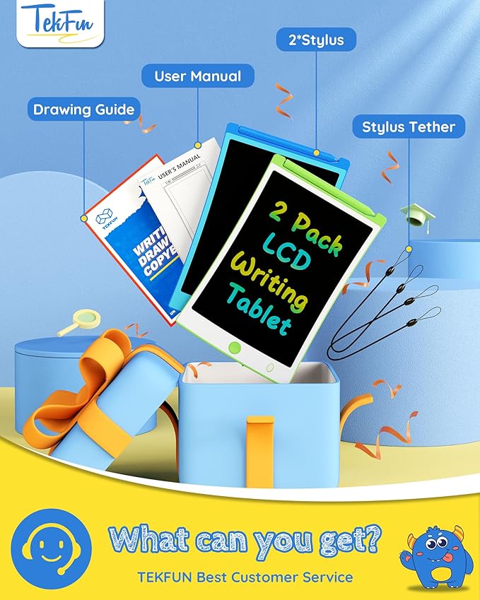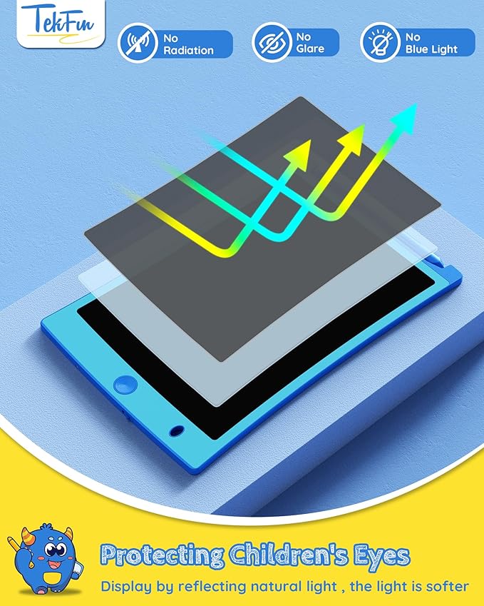 • Eye-Friendly: Say goodbye to blue light and glare with TEKFUN's LCD screen. Your child can draw for hours without straining their eyes, making it a great electronic alternative for preventing visual impairment.