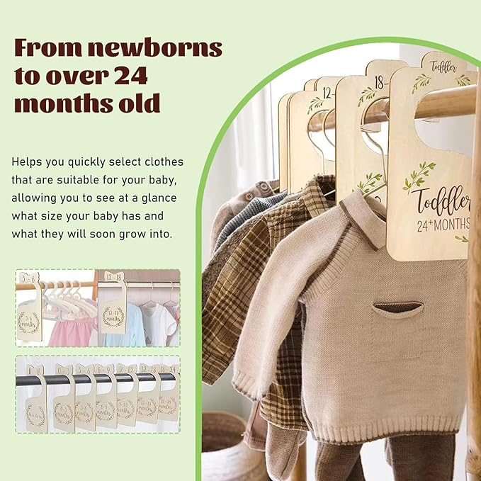 • High Quality Product: Made of natural wood, these baby closet hangers dividers are eco-friendly and won’t break or crack easily.The double-sided colorful print makes the baby clothes organizer a real eye-catcher in the closet.