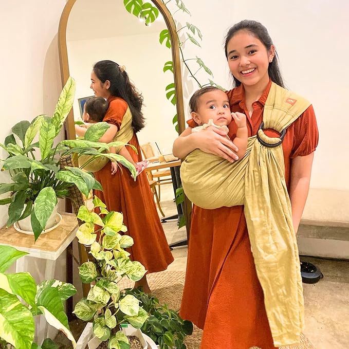 Mamaway Baby Ring Sling Carrier - Newborn and Toddler Sling (Supports up to 165lbs), IHDI Certified, Rayon & Linen Made, Soft & Breathable, Nylon 66 Safety Rings, Storage Pocket Design, Olive
