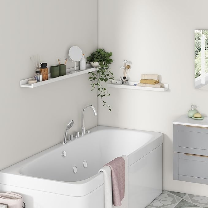 • Easy to Install: You will get a level, screws for the wall, drywall anchors, a detailed installation guide, and two beautiful hand-crafted solid pine wood shelves. With the level, you can make sure your picture ledge shelves are well aligned. Just follow the simple instruction to install the hanging shelves for wall decor within 10 minutes. We add additional screw and anchor to the hardware bag just in case. If you have any questions about our products, please feel free to contact us