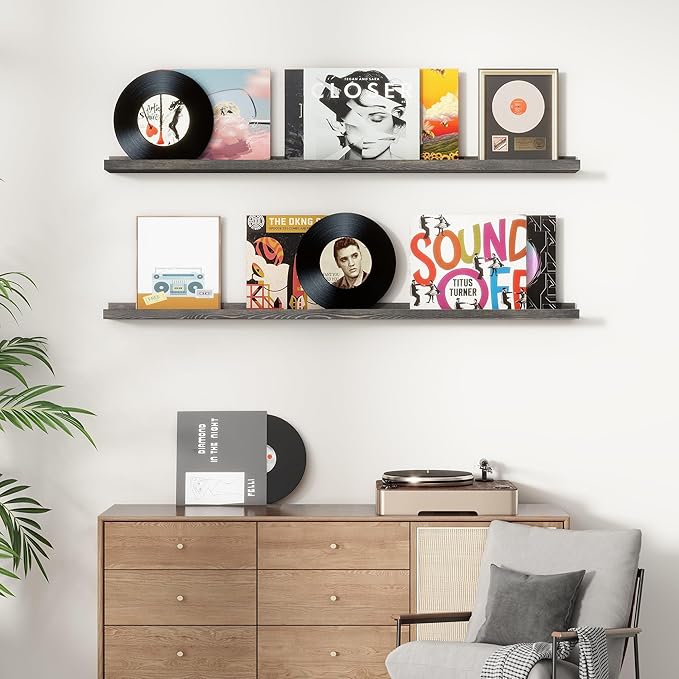 • Picture Ledge Shelves: The ledge in front of the wall shelves could prevent your precious items from falling off. And we handcraft a shallow groove on each book shelf to protect your items from sliding forward. Each floating shelf is 5 inches in depth with a 1.25 inches lip, you can put photos, pictures, DVD players, videos, books, toys, and some other knickknack on this beautiful display wooden shelf