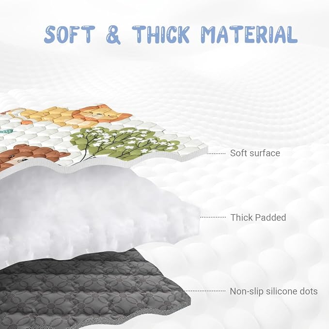 • 【Themed Design】The playmat for baby printed with cartoon forest and animal pattern, pastel & fascinating, which can easily draw babies' attention, bringing them a lot of fun. thick & soft mat provides cushioning for babies crawling, tummy time, rolling, sit up, stand and learning to walk, create a comfort space for your little angel.