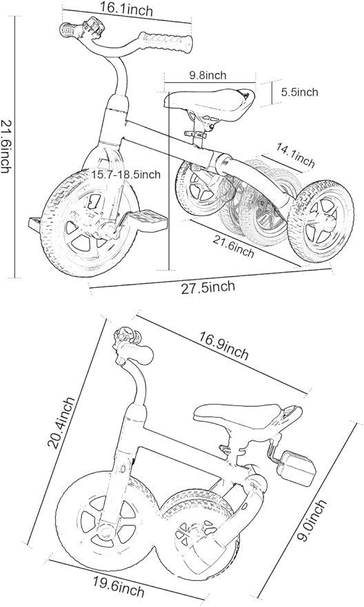 • 😊Recommended Age: Ideal for 2 to 5-year-olds, this adaptable bike transitions from a tricycle (24-32 months) with pedal or pedalless options to a balance bike (2-4 years). The adjustable seat (15.7 to 18.5 inches) caters to your child's growth, ensuring a comfortable fit. With a robust 55 lbs load capacity, it offers a durable and safe ride.