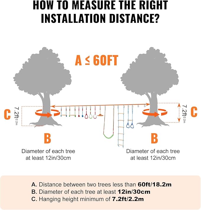 • Quick Installation and Disassembly: The outdoor playset equipment can be assembled in just 5 minutes. There's no need for a wide flat area in your yard; just fix it between two trees or poles 20 to 40 feet apart to start customizing your obstacle challenge game! It's an ideal alternative to traditional playgrounds, offering a convenient and flexible backyard challenge game for children of various ages and skill levels.