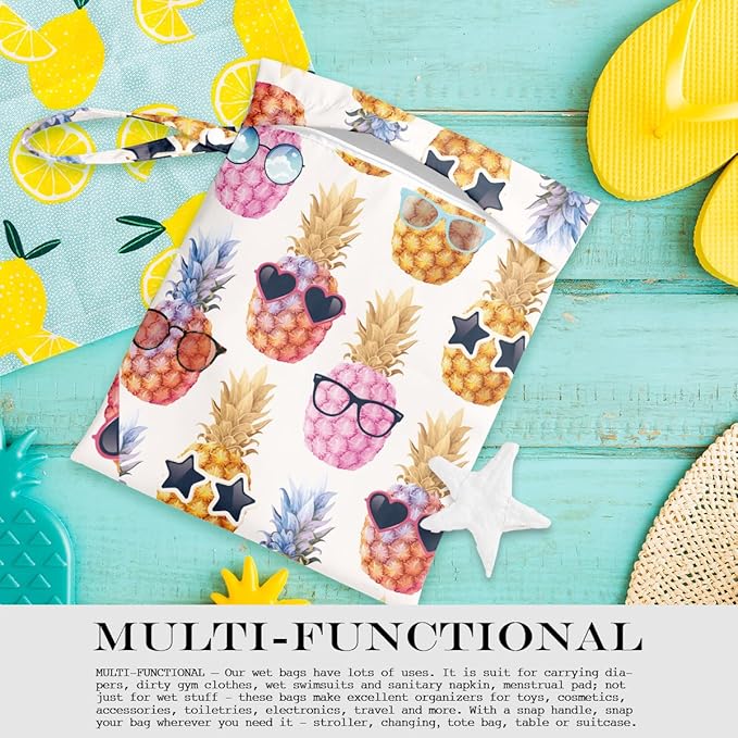• MULTI-FUNCTIONAL – Our wet bags have lots of uses. It is suit for carrying diapers, dirty gym clothes, wet swimsuits and sanitary napkin, menstrual pad; not just for wet stuff - these bags make excellent organizers for toys, cosmetics, accessories, toiletries, electronics, travel and more. With a snap handle, snap your bag wherever you need it - , changing,tote bag, table or suitcase.