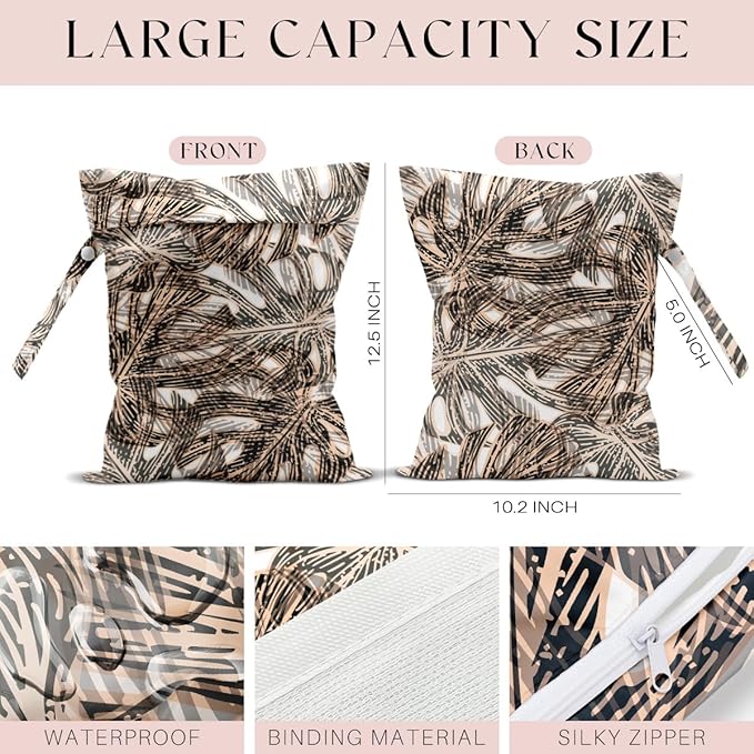 Wet Bag, Wet Dry Bag, Wet Bag for Swimsuit, Travel, Beach, Pool, Diapers, Dirty Yoga Gym Clothes, Makeup Bag, Waterproof Tropical Palm Leaves Decor Jungle Palm Leaf Favors, 12.6” x 10.2”