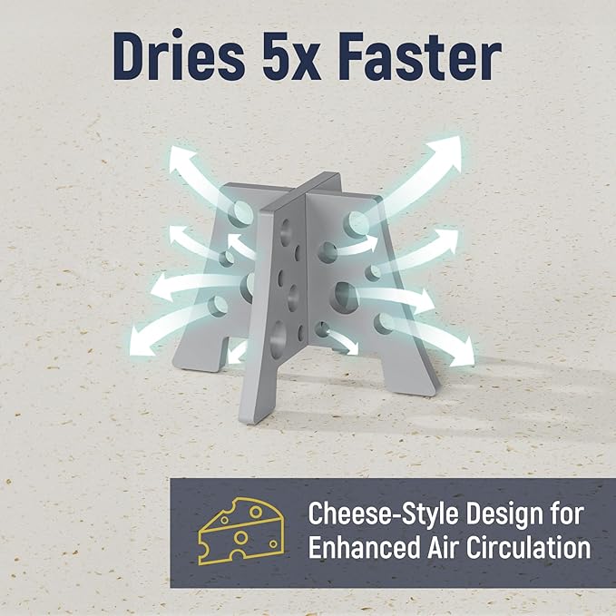 • 【Cheese-Inspired Design, Quick-Drying】Our cup drying rack is inspired by the shape of food cheese, where the designer used the cheese's distinctive, uneven holes as inspiration. Combined with the need for cups to dry quickly, we created a cheese-shaped cup drying rack. The assembled rack offers better ventilation and a more attractive design compared to the cylindrical products available on the market.
