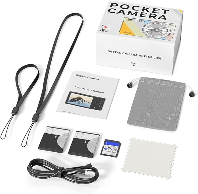 • FHD 4K 44MP Camera with 64GB SD Card:The digital camera for kids takes clear 44MP photos and 4K FHD videos. It features a large 2.8 inch UHD display for easy viewing and includes a 64GB SD card, providing plenty of space to save all their favorite moments