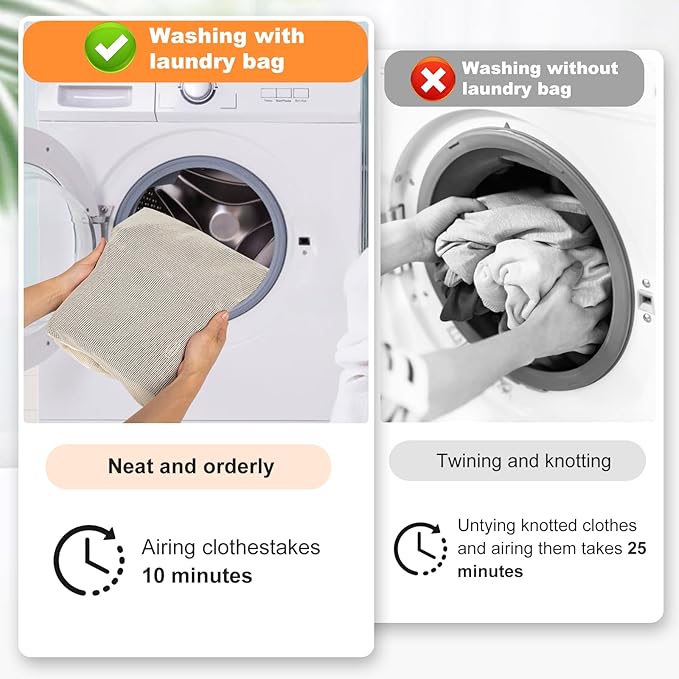 • 【Breathable Mesh, Special Zipper】Breathable mesh allows water to flow in and out smoothly, making it easy for the washer to deep clean clothes without wrinkling. The rust-resistant and durable zipper comes with a rubber band cover. You will say goodbye to zipper scratches on the washer and the opening of the laundry bag during the washing process.