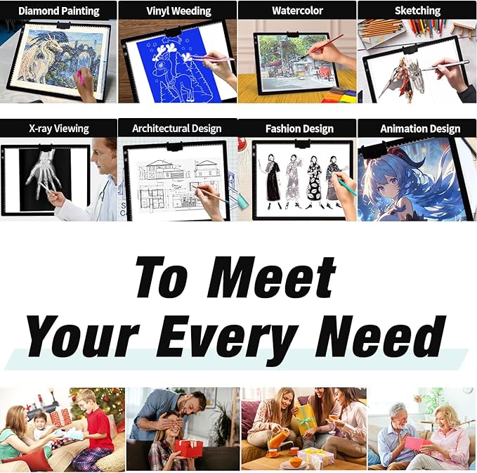 • 【Widely Used & Best Gift】A3 tracing board is large enough,measures 16.73 "x 13.5 "(42.5cm x 34.3cm), with a visible working area of 15.35 "x 11.89 "(39cm x 30.2cm).thin and easy to carry. Suitable for diamond painting,weeding vinyl.It's also great for sketching and painting, stenciling, 2D animation, calligraphy, embossing, scrapbooking, tattoo transfers,streaming, sewing projects, stained glass, quilting,and more.Best gift for Christmas, birthday or other holidays.