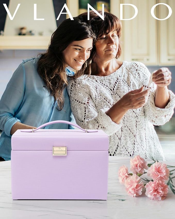 • Crafted with High-Quality Materials - Vlando luxurious synthetic leather jewelry box is resistant to moisture and scratches. The sleek exterior and premium velvet interior lining make it a stunning addition to any room