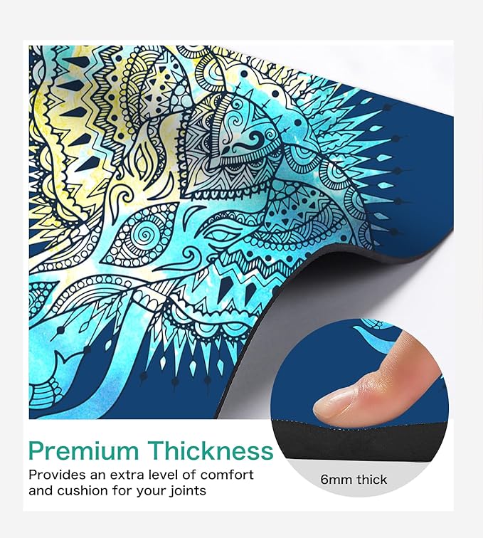• Standard Size: 72"(183cm) x 24" (61cm); offers adequate space to fit any type of exercise like yoga, pilates, bikram, and fitness exercise. the 6mm extra thick, high density provides excellent cushioning and soft. All our mats come with a free carry bag for easy transport from home to yoga class