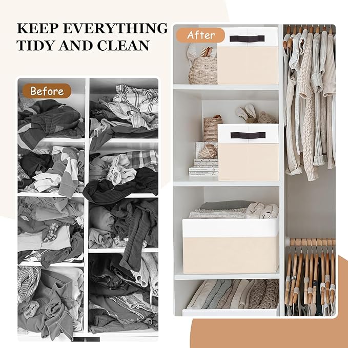• 【STYLISH & DECORATIVE】 Designed with two tones, adorned with 2 brown handles, Not only serve as fabric storage bins, but a statement piece that reflects your discerning taste and pursuit of quality life. Bring a sense of order and refinement and a touch of warmth to your living room, bedroom, bathroom, office, nursery room, laundry room and more.