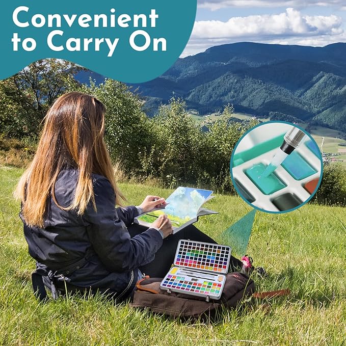 • Portable Paint Set for Travel: Ultimate travel watercolor set with a compact carrying box, size-9.92*5.15*1.33 in, weight-20.3 oz, won't take up much space in your bag. Wherever you go, you can always enjoy the freedom of painting