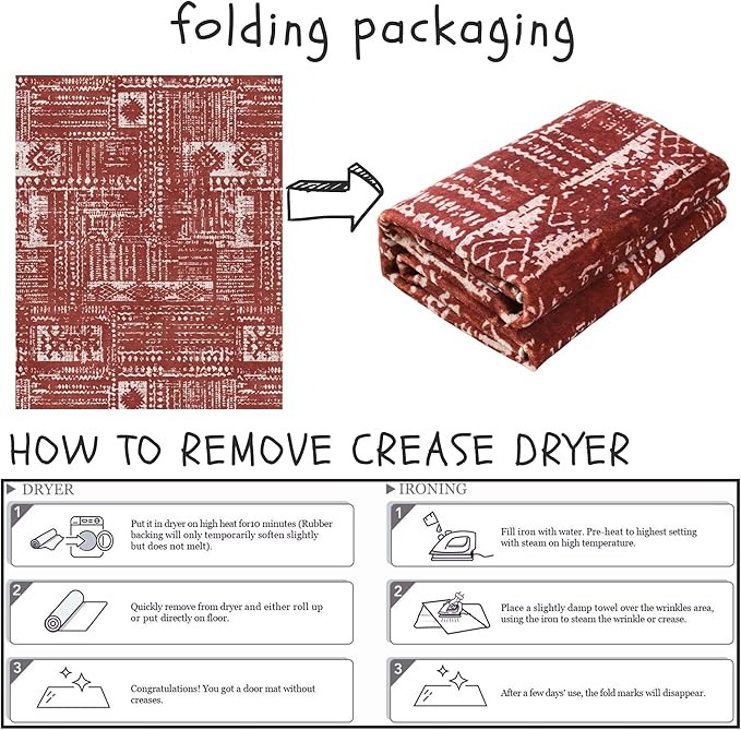 • ✨ WASHABLE RUG: Protecting rugs from spills is nearly impossible, especially you have a child, a pet, or one of the messier hobbies. Use vacuum cleaner, broom, or wipe for daily cleaning to prevent dust and crumbs from setting into the fibers. if excess liquid remains or dirt on the surface of the rug and you want your rug to to be thoroughly clean, Machine wash with cold water on gentle cycle(not to add bleach),air dry or dry on air-only cycle with out heat.