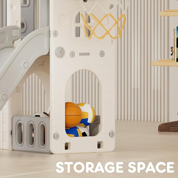 YUFU 8 in 1 Toddler Slide Set, Kids Slide for Toddlers Age 1-3, Toddler Playset with Climber, Basketball Hoop and Ball, Outdoor Indoor Playground for Toddlers 1-3 (Beige+Gray)