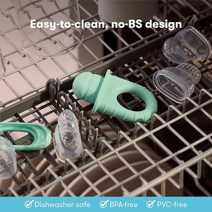 • FOOD INTRODUCTION: Fill the silicone feeder with fresh or frozen fruits, vegetables, yogurt, purees, breastmilk, or ice cubes. It's the perfect fruit feeder for babies.