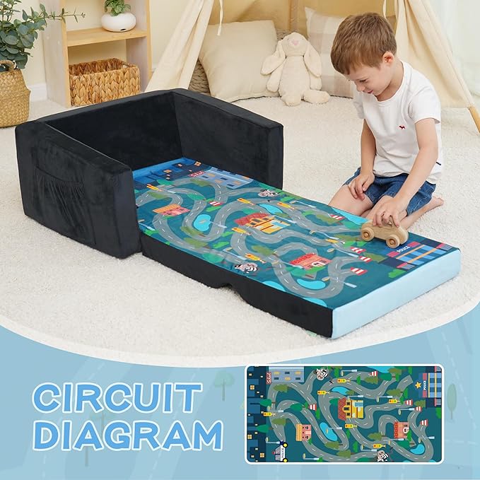 • 2 IN 1 - Perfectly sized sofa bed for kids. Fold-out bottom piece 2 in 1 Flip Open Kids sofa bed, gives childrens the option of lying down flat. Give children to read, play, or folded into a reclining chair and take a nap to provide a more comfortable place.