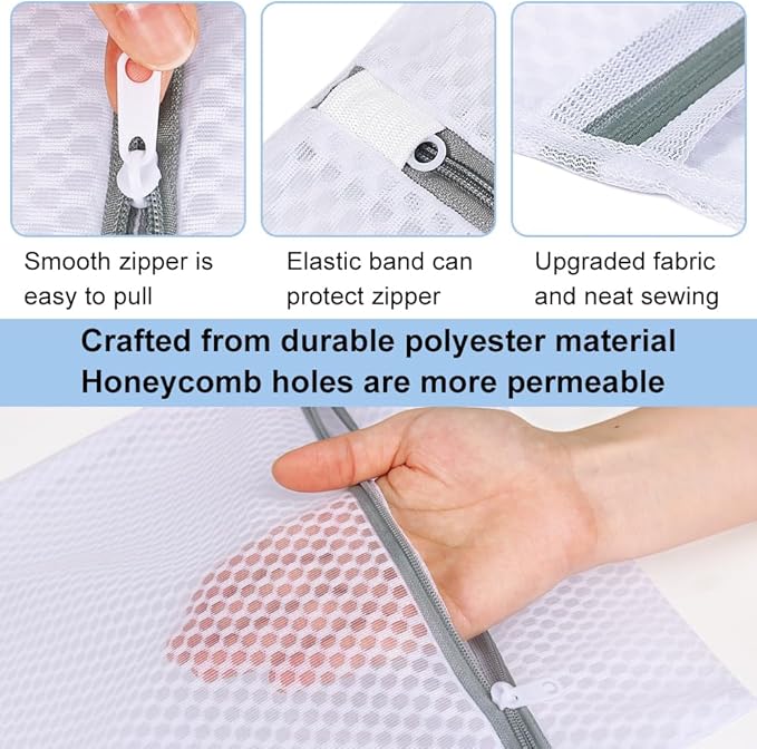 • HONEYCOMB MESH CONSTRUCTION - Crafted from high-quality polyester material for long-lasting usage. Breathable mesh ensures thorough rinsing and even drying, increasing the efficiency of the laundry process, ensuring your clothes are fresh and clean every time.