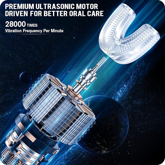 RexCodar Ultrasonic Kid's U-Shaped Electric Toothbrush, IPX7 Waterproof, Five Cleaning Modes, 60S Smart Reminder (Blue Ages 6-12)