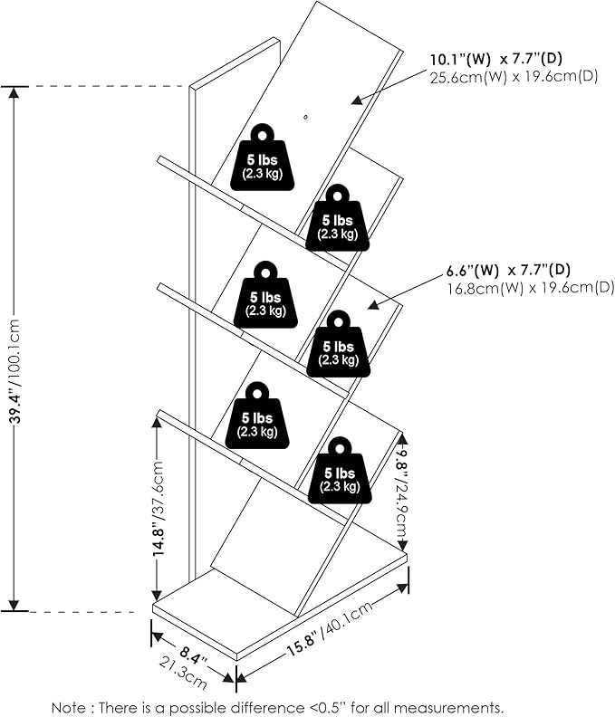 • With versatile functionality, it can serve as a bookshelf, display stand, or organizer. Each shelf hold 5 lbs. Fits Space, Fits Budget.