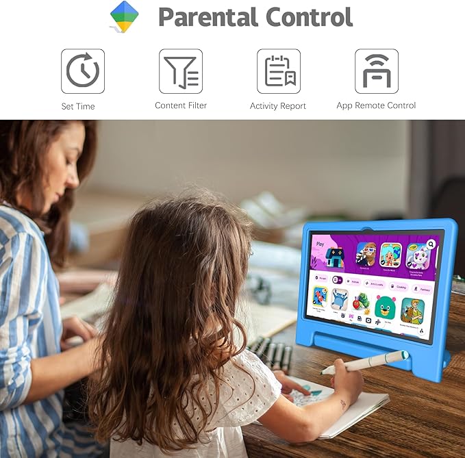 • Easy Parental Control: Google Family Link Parent Dashboard allows you to limit screen time, set content filters, and password protection. Allow the content you want and learn about their activities on the kids tablet gives you complete control of every aspect, which will give you peace of mind when you hand your child the tablet.
