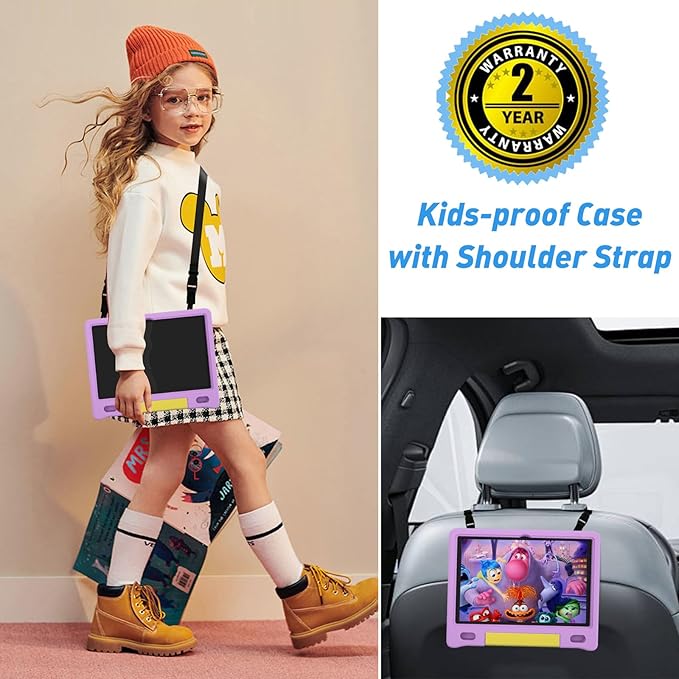 Kids Tablet, 10.1 Inch Tablet for Kids, Android 14, 64GB, Octa-Core CPU, WiFi, Big Battery, Kids Conten, Parental Control, HD Display Children Age 3-12, Bluetooth, Purple Case