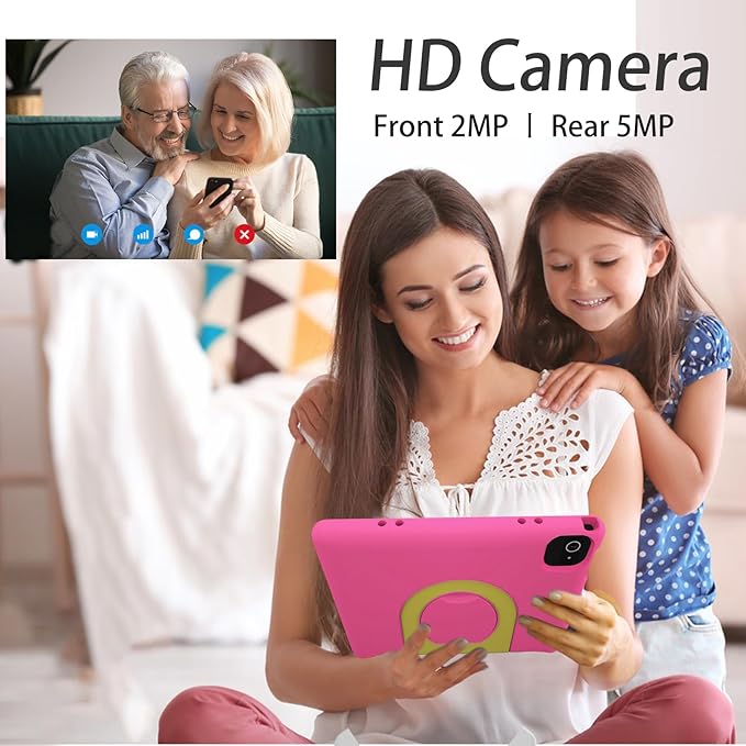 • ANDROID 14 Tablet for Kids丨64GB : The latest Android 14 kids tablet delivers 30% faster app launches and smoother animations. Features an 8-core processor, upgraded 4GB RAM + 4GB virtual RAM, and 64GB ROM. Expandable up to 1TB (MicroSD card not included). Enjoy seamless access to Google Play. WiFi, Bluetooth, and dual HD cameras.
