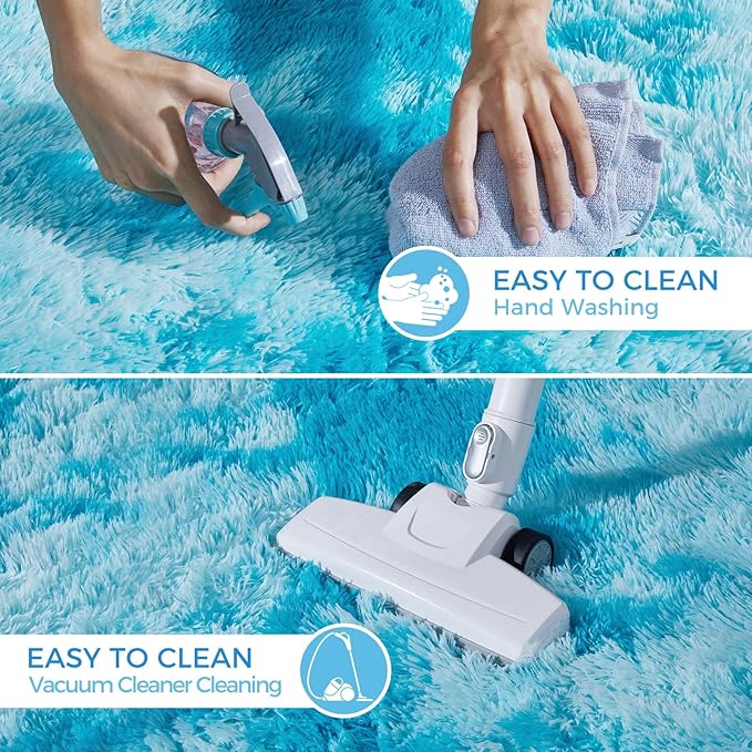 • 💗Easy To Clean - We recommend that you can directly shake off the impurities on the surface of the shaggy carpet or use a vacuum cleaner for daily cleaning. For deep stains, you can choose to wash by hand . After cleaning, place it in a ventilated place to air dry. Note: Vacuum packed, please lay flat and will fluff up back in 2-3 days.