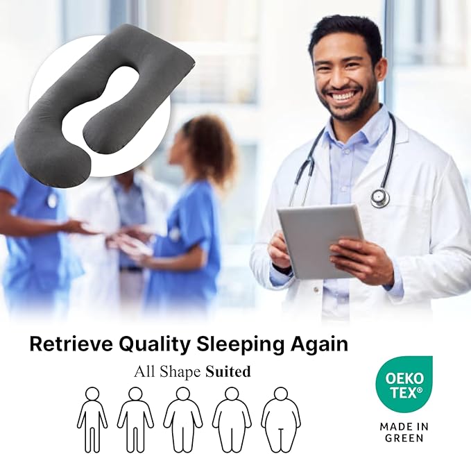 • Shape and Sizes: The ALLOPERA full-body maternity pillow measures 57 inches (145 cm) in length, offering extensive support for the entire body. Its ergonomic design, combining both C shape and U shape, is tailored to provide 360-degree comfort, making it ideal for various sleeping positions, whether side sleeping, back sleeping, or when dealing with a growing belly. The pillow's generous size ensures that users, especially those in later stages of pregnancy, can enjoy relief from multiple body areas, including the back, hips, and legs.