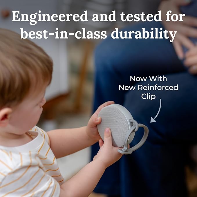 • PORTABLE: This USB-rechargeable sound machine can operate for up to 33 hours on one charge. New reinforced clip features an ultra-wide opening for easy fastening to a stroller, car seat & crib. For proper use, only use the USB cable included.