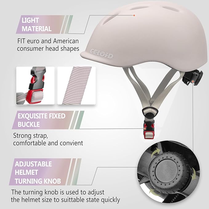 • 🛴【HEAD SIZE】: Small:19.7 - 22.1 inch(50–56 cm) suitable for 5-9 years old kids; M: 21.7 - 23.2 inch (55–59 cm) suitable for 10-16 years old Youth. The CELOID kids helmet fit system and additional pads are designed to grow with your child