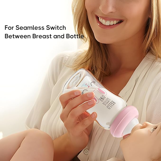 • Glass natural baby bottles with natural response nipples can control the speed of milk according to the baby suction, just like the natural sensation of breastfeeding.