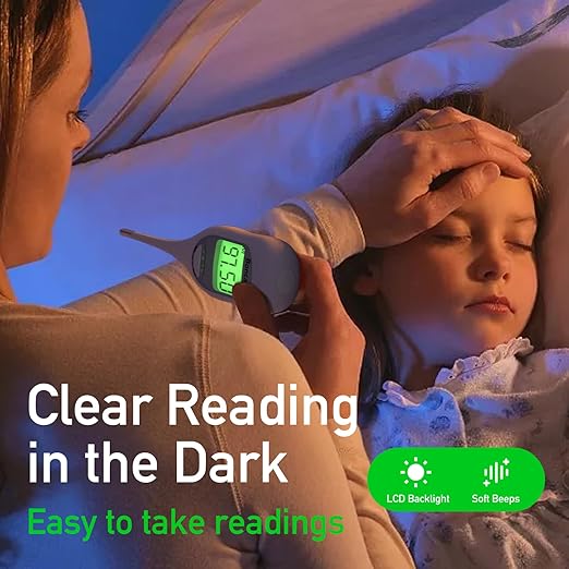 • Multifunctional and User Friendly: The health care thermometer is packed with a variety of useful features. It has a fever alarm to remind you if you're sick, a memory display to keep track of previous readings, a waterproof tip (to deal with daily cleaning), and an automatic shutdown function. All these characteristics make it an ideal thermometer for home use and a basal thermometer for women fertility.